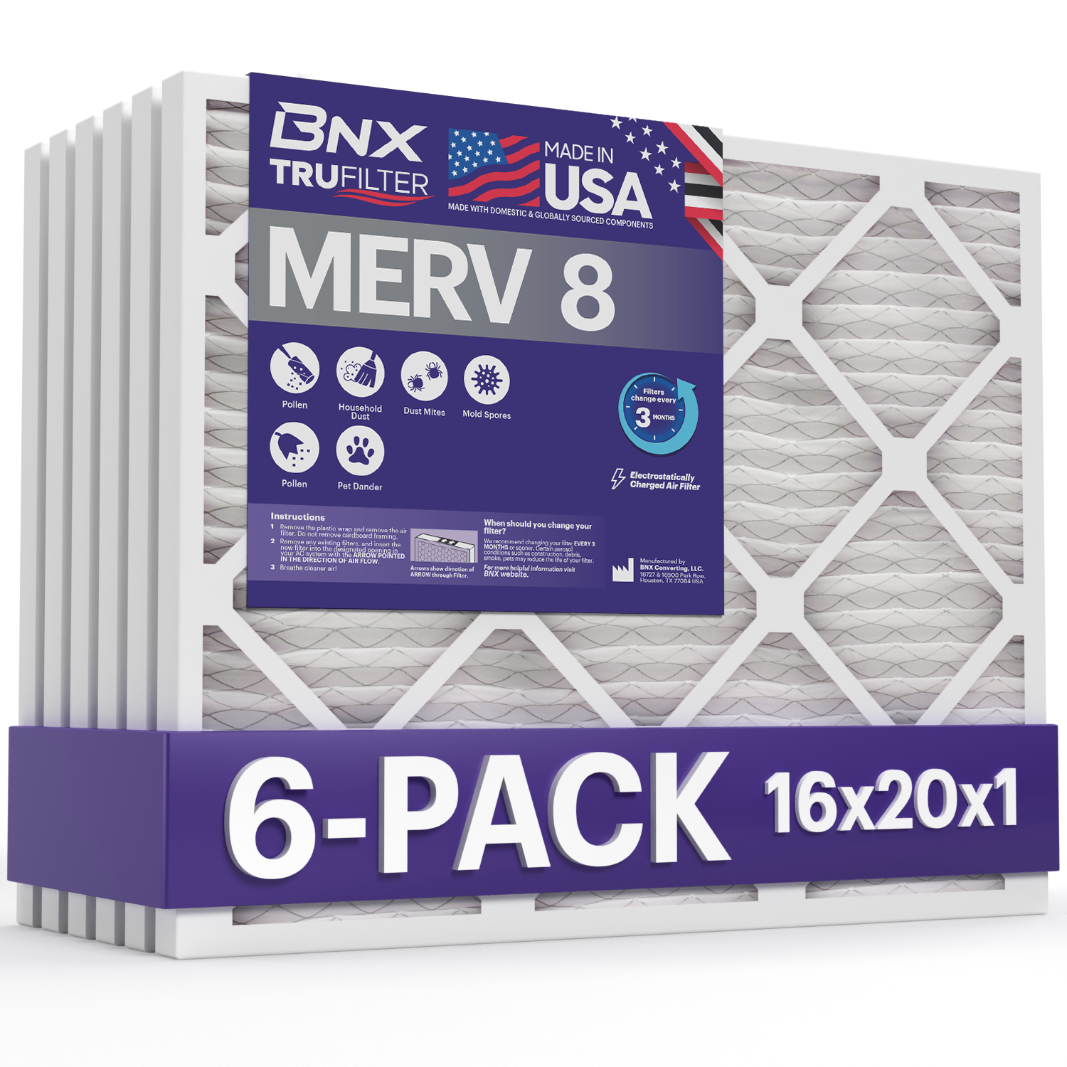BNX TruFilter 16x20x1 MERV 8 Pleated Air Filter – Made in USA (6-Pack)