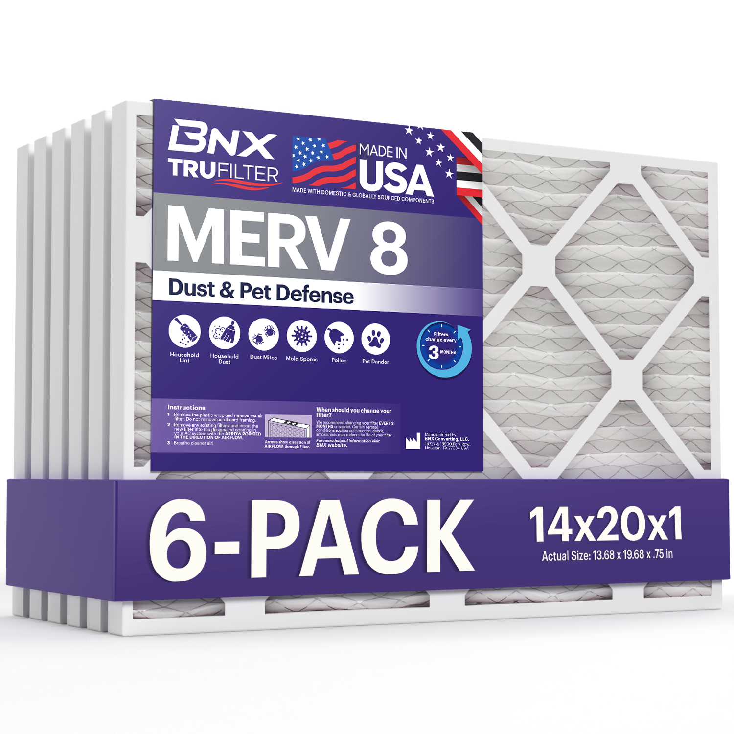 BNX TruFilter 14x20x1 MERV 8 Pleated Air Filter – Made in USA (6-Pack)