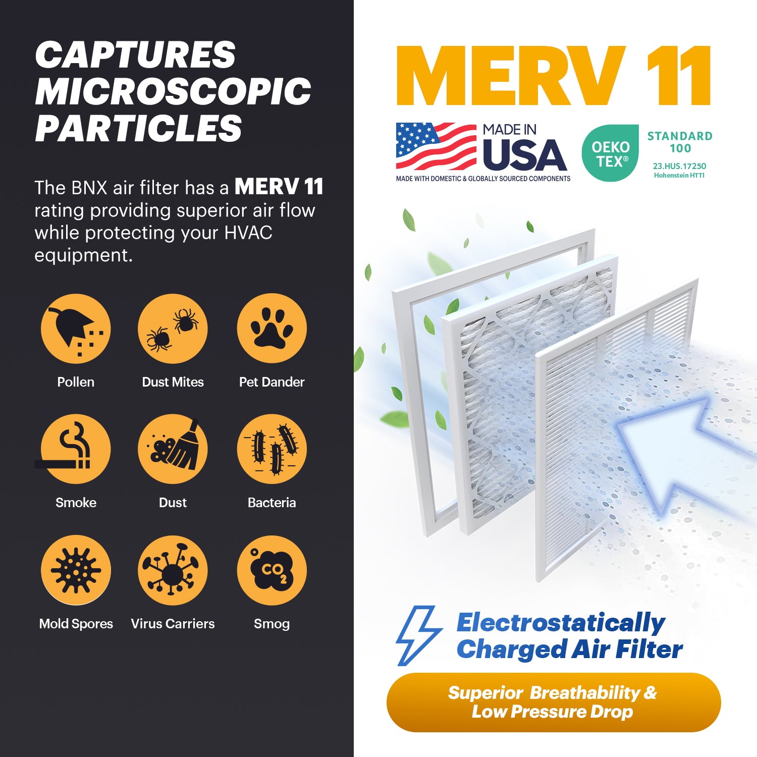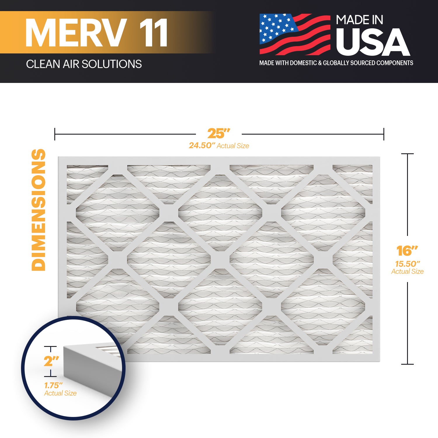 BNX TruFilter 16x25x2 MERV 11 Pleated Air Filter – Made in USA (2-Pack)