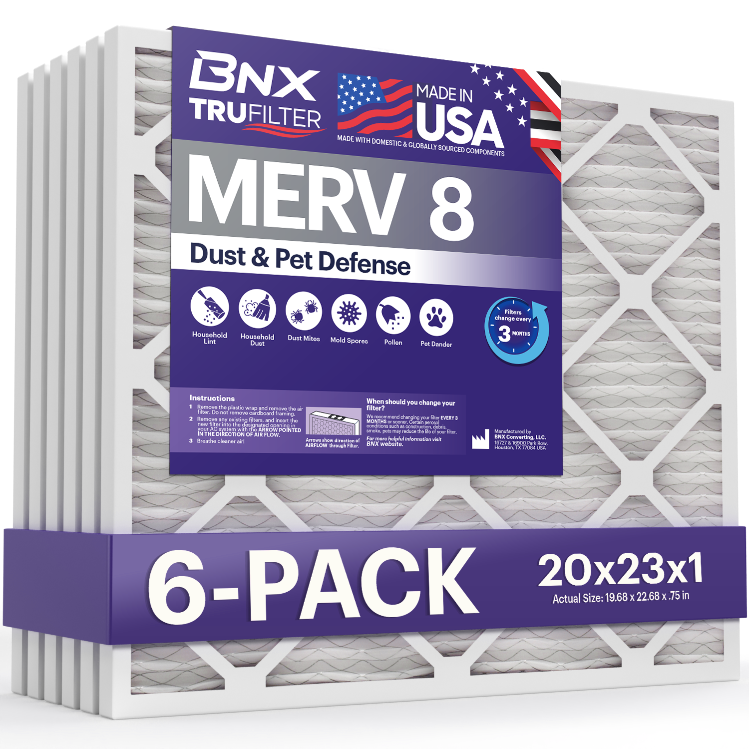 BNX TruFilter 20x23x1 MERV 8 Pleated Air Filter – Made in USA (6-Pack)