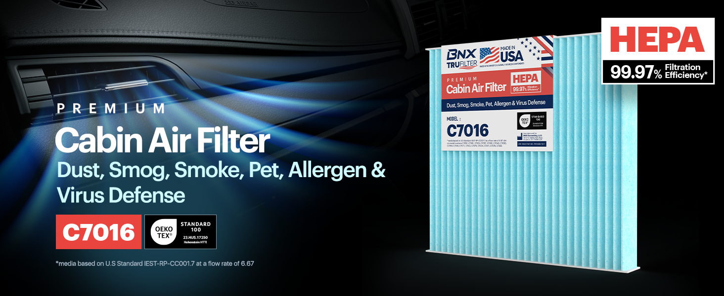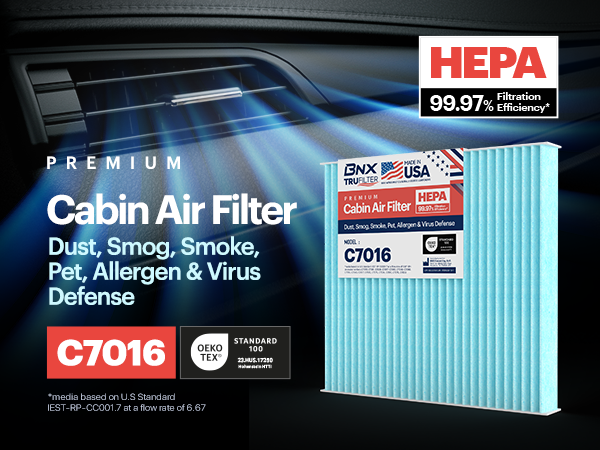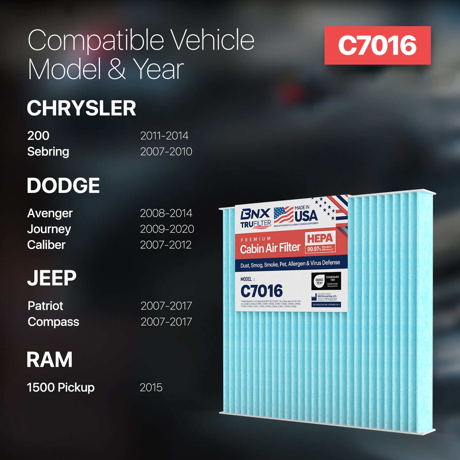 BNX TruFilter C7016 Cabin Air Filter, HEPA 99.97%, MADE IN USA, Compatible With Ram: 1500 Pickup; Chrysler: 200, Sebring; Dodge: Avenger, Caliber, Journey; Compatible with Jeep: Compass, Patriot