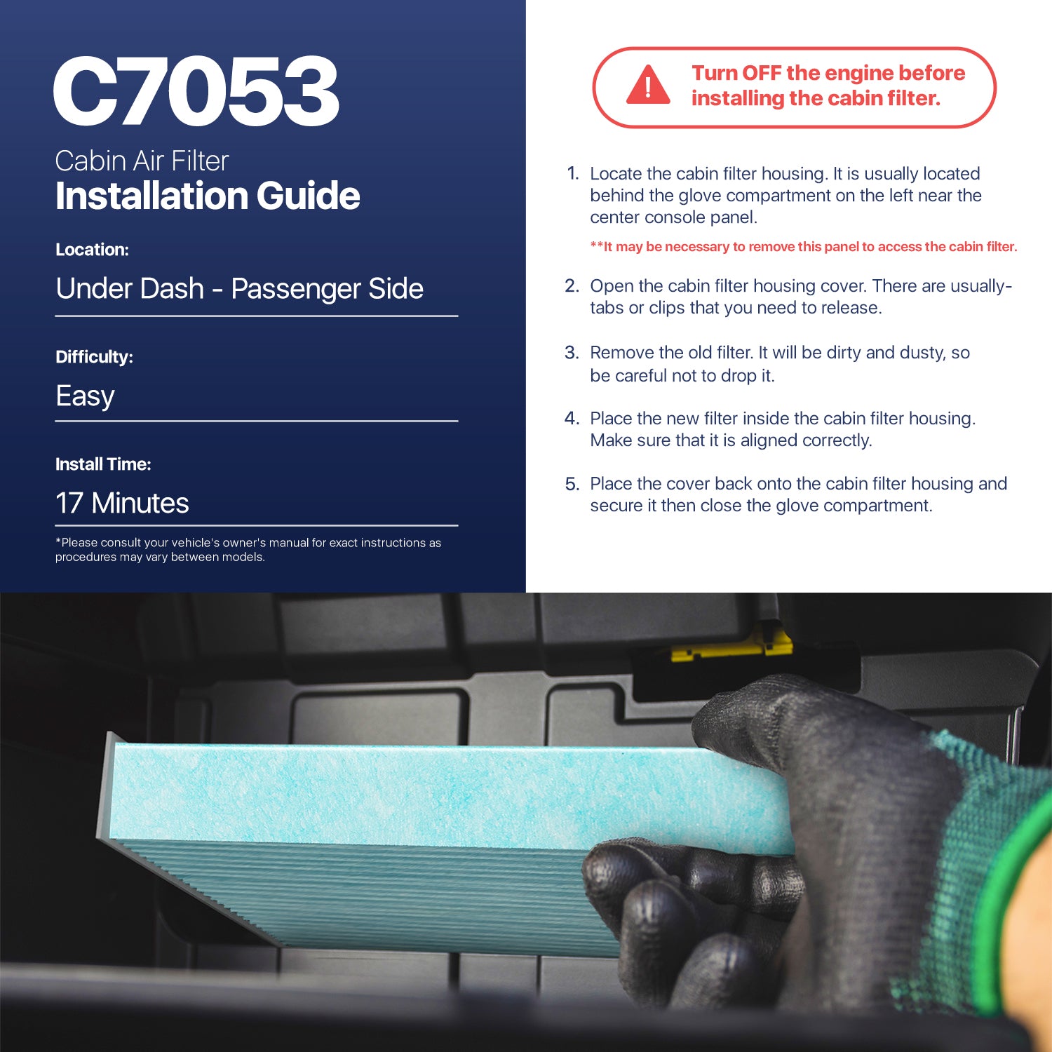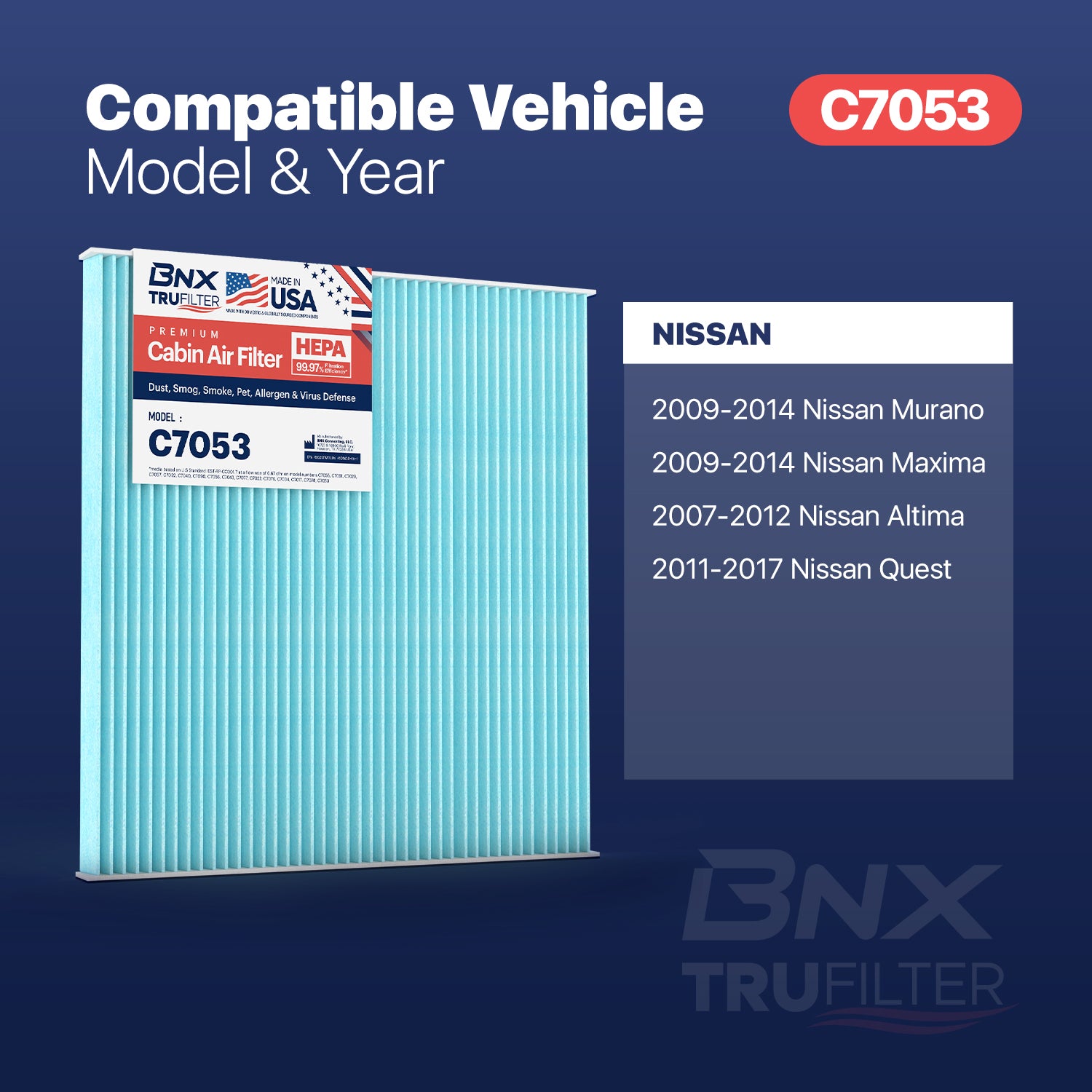 BNX TruFilter C7053 Cabin Air Filter, 99.97% HEPA, MADE IN USA, Compatible With Nissan: Altima 2007-2012, 2009-2014 Maxima, 2009-2014 Murano, 2011-2017 Quest