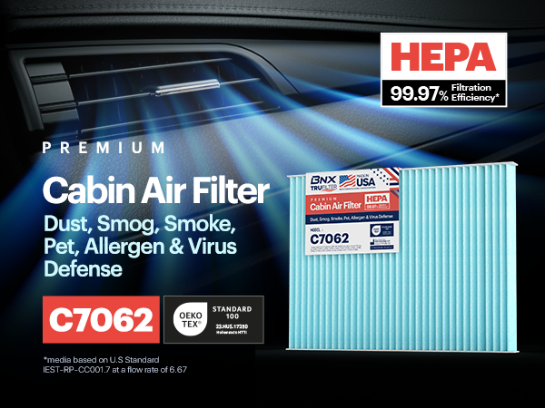 BNX TruFilter C7062 Cabin Air Filter, HEPA 99.97%, Compatible With Cadillac; DeVille, DTS; Oldsmobile Aurora; Buick: LeSabre, Lucerne; Pontiac: Bonneville