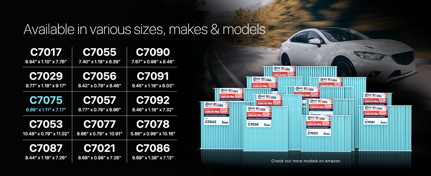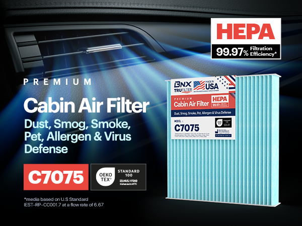 BNX TruFilter C7075 Cabin Air Filter, HEPA 99.97%, MADE IN USA, Compatible With Honda Fit, Scion FR-S; Subaru: BRZ; Toyota: 86