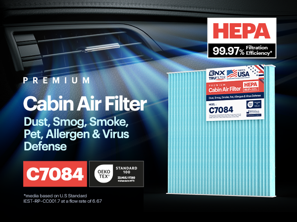 BNX TruFilter C7084 Cabin Air Filter, HEPA 99.97%, Compatible With Jeep Cherokee; Chrysler 200